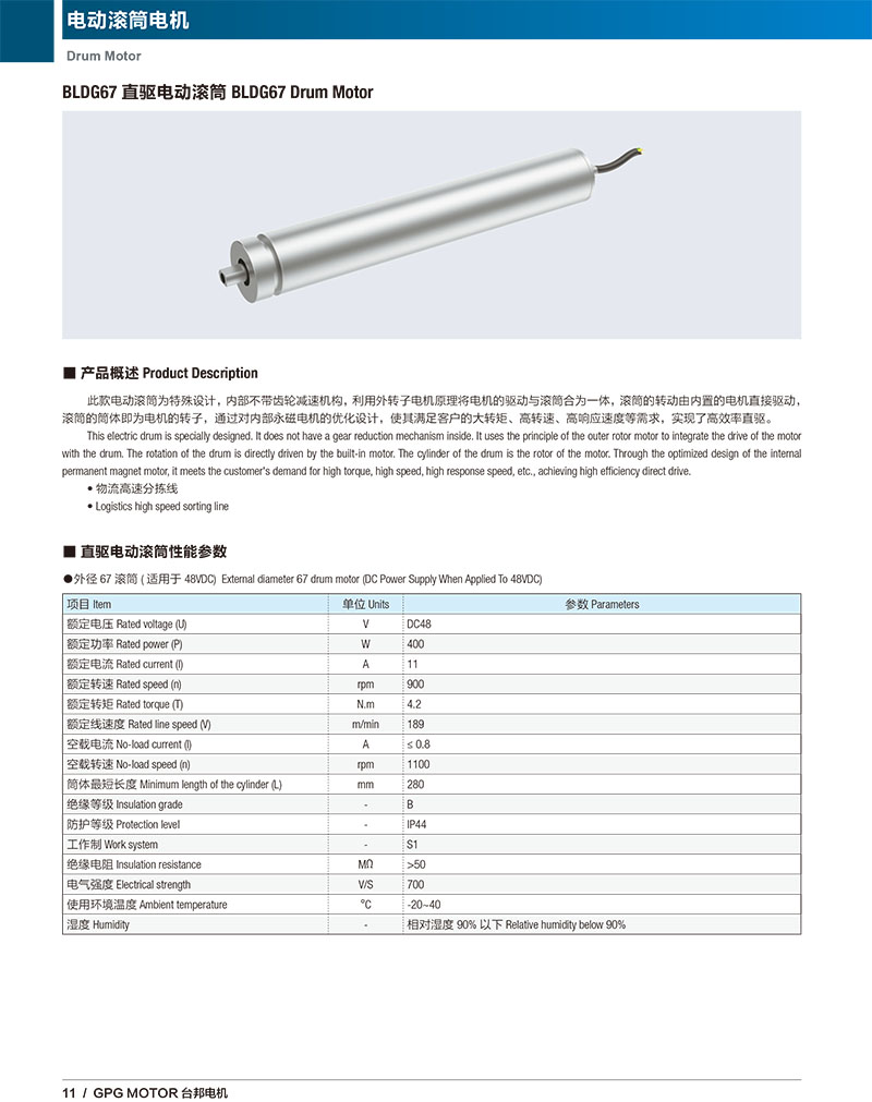 此款電動滾筒為特殊設(shè)計,內(nèi)部不帶齒輪減速機(jī)構(gòu),利用外轉(zhuǎn)子電機(jī)原理