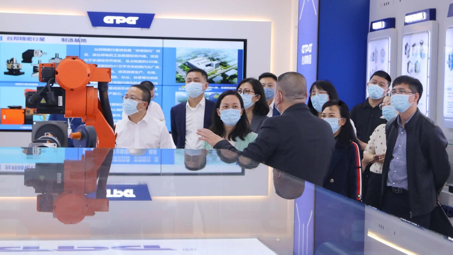 在展廳里,臺(tái)邦集團(tuán)董事長陳春良向調(diào)研組一行詳細(xì)介紹了公司近幾年拳頭產(chǎn)品高精密行星減速器及智能精密電動(dòng)滾筒,并表示公司在未來會(huì)在智能精密傳動(dòng)領(lǐng)域不斷拓展,開發(fā)更多滿足智能精密制造的產(chǎn)品并提供專業(yè)配套服務(wù)。